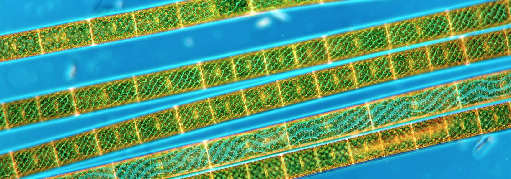 Spyrogira observées en éclairage oblique codé en couleur - Courtesy of Martin Gerhardt.